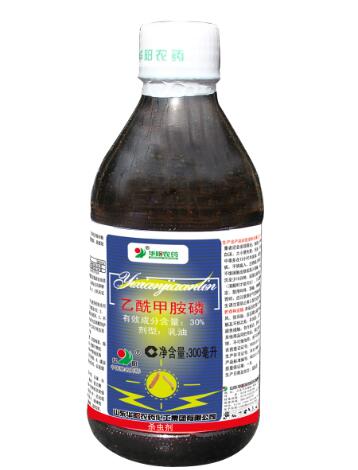 30%乙酰甲胺磷EC:防治菜青蟲、小菜蛾,每畝用80~120ml,兌水40~75kg噴霧;防治蔬菜蚜蟲,每畝用50~75ml(有效成分15~22.5g),兌水50~75kg噴霧;防治稻卷葉螟,每畝用125~225ml,兌水60~75kg噴霧;防治棉蚜、小造橋蟲,每畝用100~150ml,兌水75~100kg常量噴霧;防治棉鈴蟲、紅鈴蟲,每畝用150~200ml,兌水75~100kg常量噴霧;防治桃小食心蟲、梨小食心蟲,用水稀釋成500~750倍(有效濃度600~400mg/L)均勻噴霧;防治柑桔介殼蟲,用水稀釋成300~600倍液(有效濃度1000~500mg/L)均勻噴霧;防治玉米小麥粘蟲,每畝用120~240ml,兌水75~100kg噴霧;防治煙青蟲,每畝用100~200ml,兌水50~100kg噴霧。用于棉鈴蟲、蚜蟲卵孵盛期至低齡幼蟲鉆蛀期間均勻噴霧。防玉米螟在卵孵化盛期均勻噴霧。防玉米粘蟲在卵孵盛期或幼蟲3齡前均勻噴霧。在其它作物上使用,在蟲害發(fā)生初期開始施藥。本品不可過熱,或者與堿性物質(zhì)混用,以免降低防效;施藥時(shí)勿接觸皮膚,接觸后立即沖洗;施藥三天內(nèi)禁止人畜下田,五天內(nèi)不要將田水放入池塘、河道,避免魚類中毒。安全間隔期為14天。